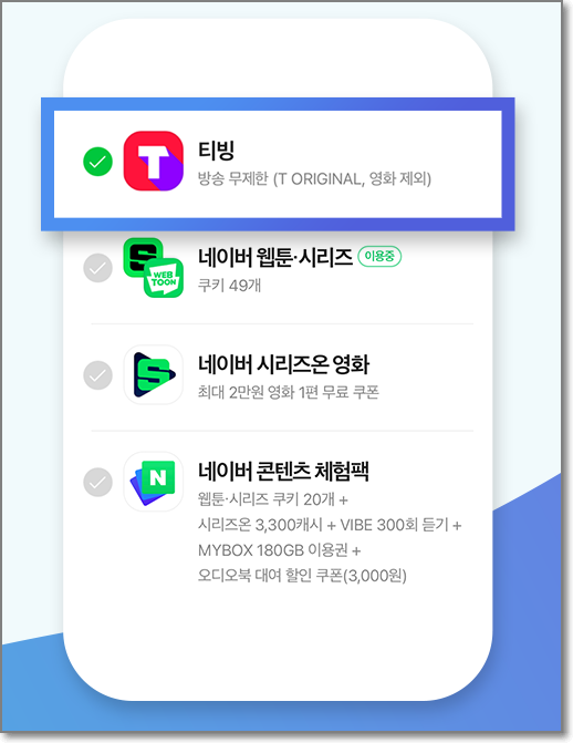 멤버십 가입 시 디지털 서비스 혜택으로 티빙을 선택하면 됩니다.