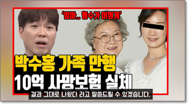 또 박수홍은 고소를 진행하며 뜻밖의 사실을 알게 되었다고하는데 친형의 권유로 다수의 보험에 가입했는데, 그동안 노후를 대비하는 저축성 상품인 줄 알았던 보험 대다수가 사망 보장 성격에 많이 치중되어 있었던 것이었고 보험 전문 변호사는 연예인임을 감안해도 1회 보험료가 고액인 다수의 보험에 가입한 건 매우 이례적이라고 밝히고있네요