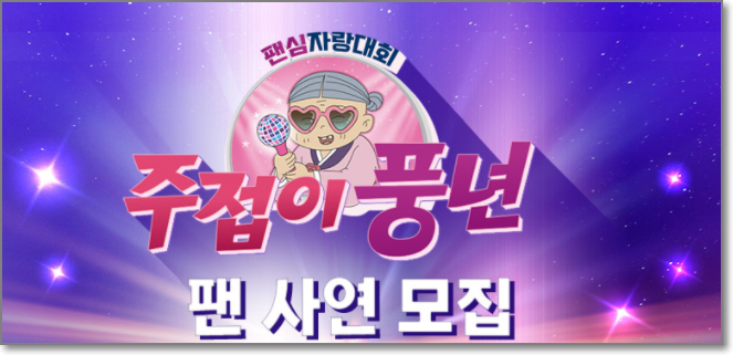 팬심 자랑 대회 <주접이 풍년> 팬 사연 모집 신청 방법은 아래의 링크를 통해 하면 됩니다.