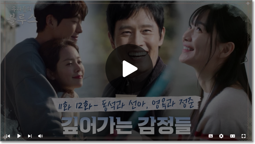 우리들의 블루스 삶의 끝자락, 절정 혹은 시작에 서 있는 모든 사람들의 달고도 쓴 인생을 응원하는 드라마 우리들의 블루스가 시작합니다. 아래를 통해 자세한 시청 방법과 재방송 다시보기 정